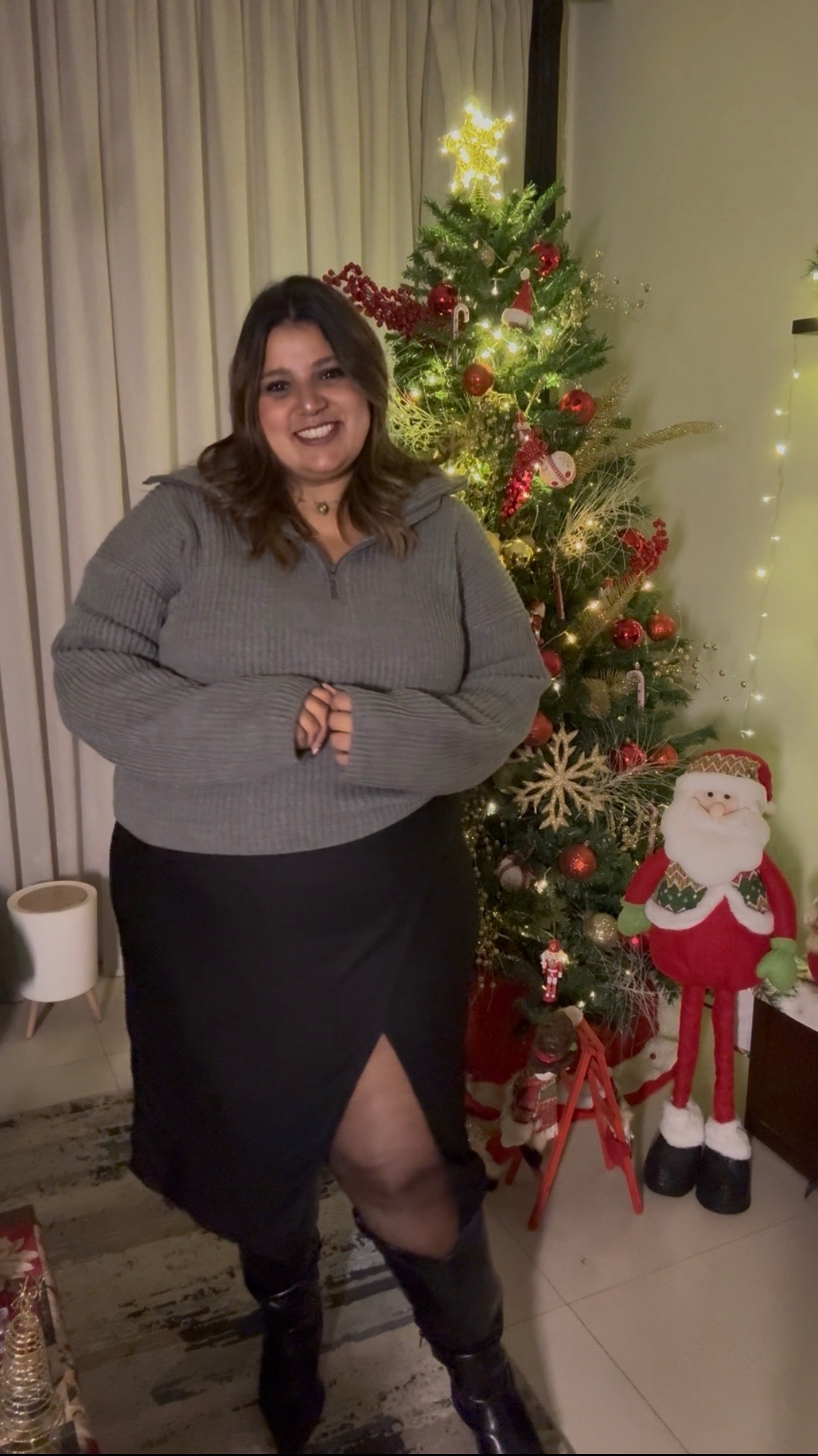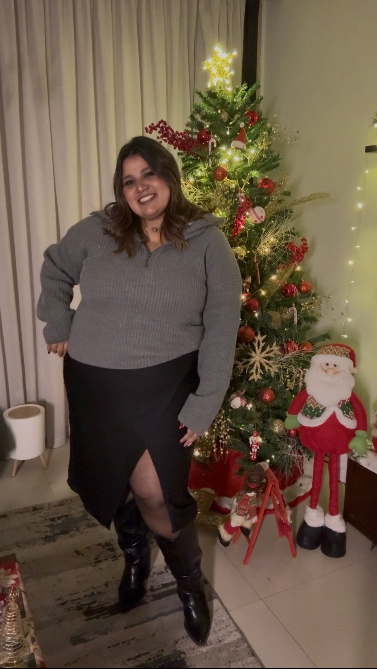 Featuring a luxe ribbed texture and a trendy zip neckline, it offers a relaxed yet flattering fit that celebrates your curves. Wear it zipped up for a snug, high-neck look, or unzipped for a laid-back collar vibe. Whether you're pairing it with festive trousers or your favorite lounge leggings, this knit brings the comfort and the joy.